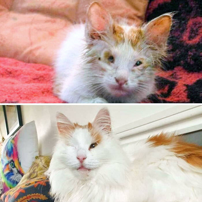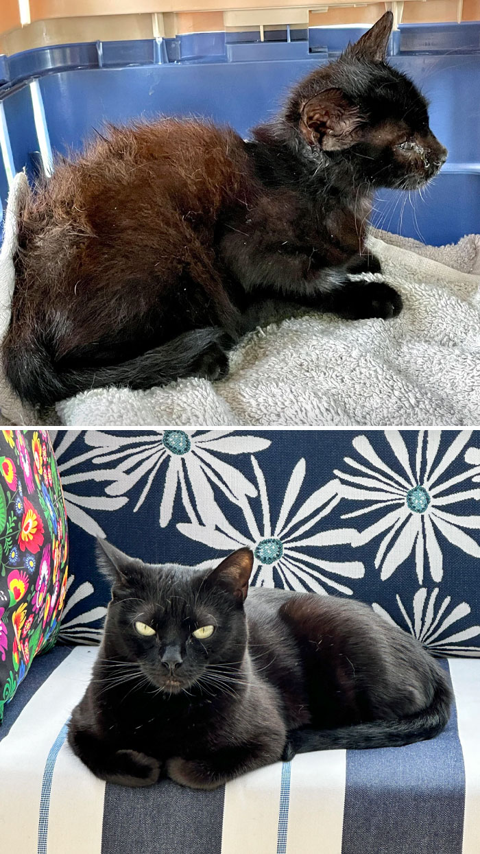 We’ve gathered some wholesome and heartwarming before and after pics of cats who found their forever home. We also got in touch with Joey Lusvardi, Certified Cat Behavior Consultant at Class Act Cats to learn more about our furry friends. So get comfortable as you scroll through, upvote your favorites and share your thoughts below.