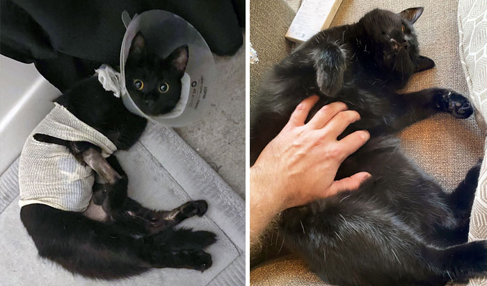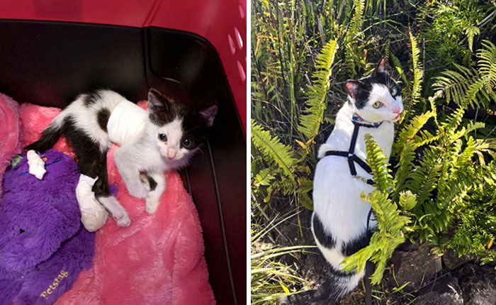 #36 We Found This Little Guy Running Around A Parking Lot. It Turns Out He Had Lost Part Of His Tail And One Of His Feet. After Many Vet Visits, He Recovered And Became One Of The Sweetest Cats
