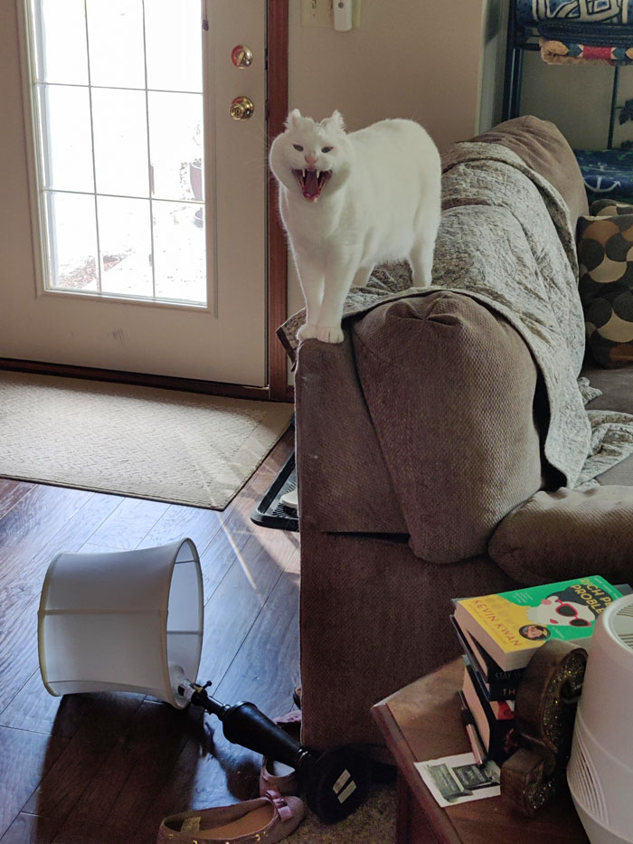 #15 My Jerk Cat Knocks Over A Lamp And Then Yells At Me About It