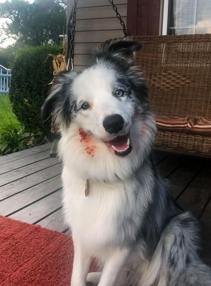 #5 I Want To Apologize To Our Neighbors Who Are Missing A Rack Of Ribs. Our Dog Escaped Through The Fence And Came Back An Hour Later With This