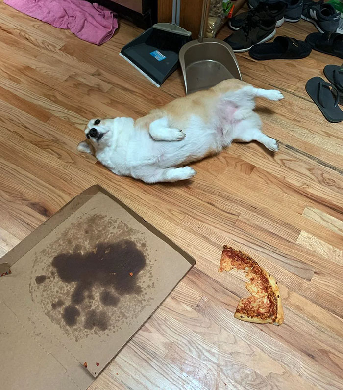 #22 I Came Home To This Little [jerk] Bloated Because He Ate 3/4 Of A Costco Pizza By Knocking It Off The Counter