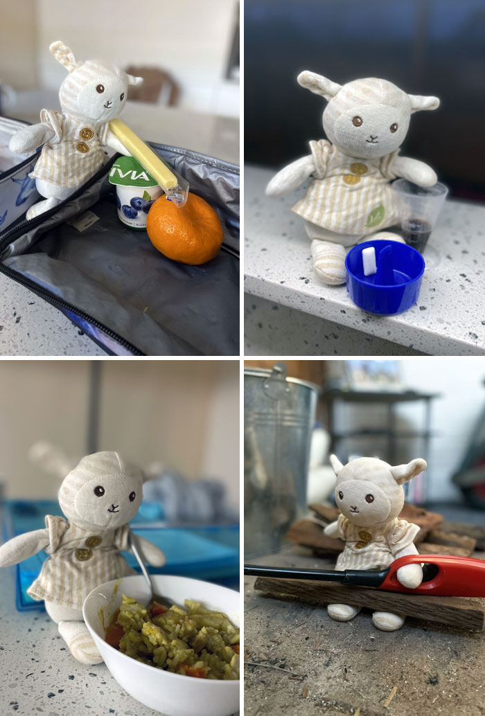 #43 My Daughter Forgot Her Favorite Toy In The Car And Was Extremely Upset. I Sent Her Photos To Show Her That Sheepy Was Alright And Helping Me At Work