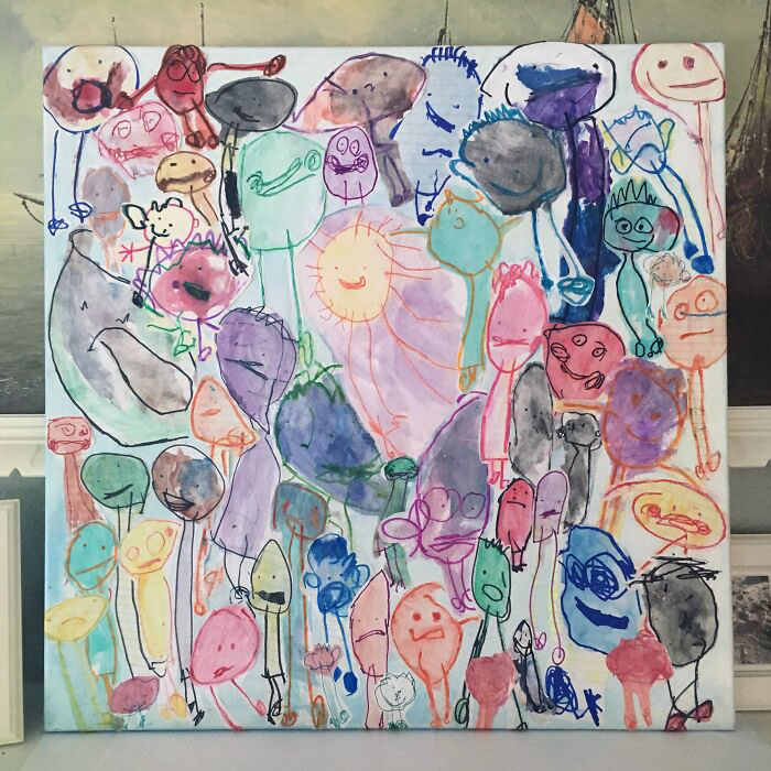 #8 Whenever My 7-Year-Old Daughter, Who Has Down Syndrome, Draws A Person, She Signs That It’s “Dad”. I’ve Saved Them And Put Them On A Canvas For Father’s Day