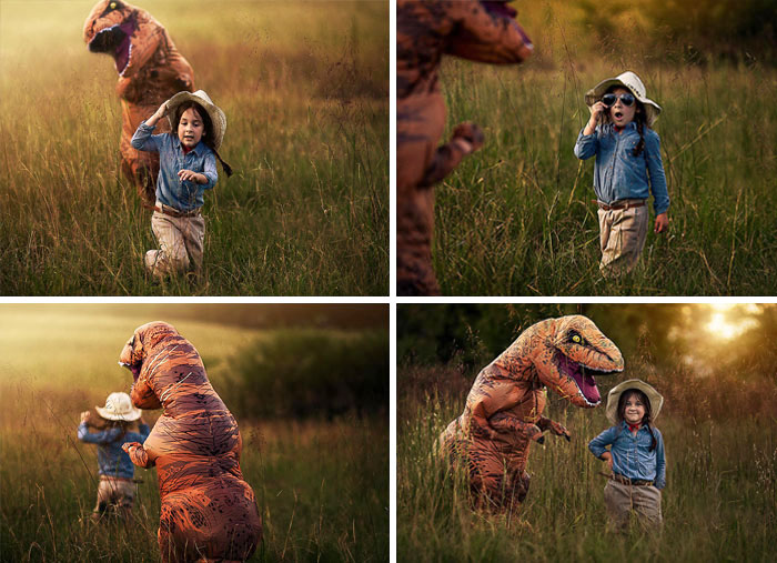 #10 My Autistic Son Hates His Photo Taken, So I Let Him Wear A T-Rex Suit For Family Photos