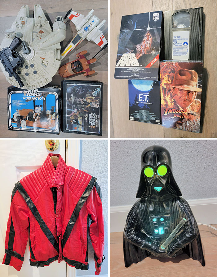 My dad called me one day and told me there was a large bin in his storage full of my stuff that my mom had packed away long ago. VHS classics, Michael Jackson thriller jacket. Darth Vader lamp and so on.