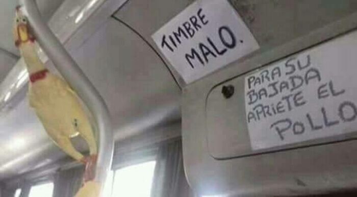 #2 “Broken Button. Squeeze The Chicken To Request Stop.”