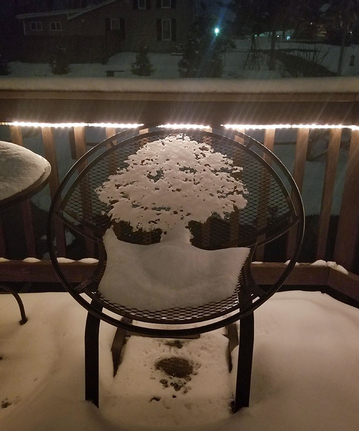 #27 The Melting Snow On This Chair Looks Like A Tree