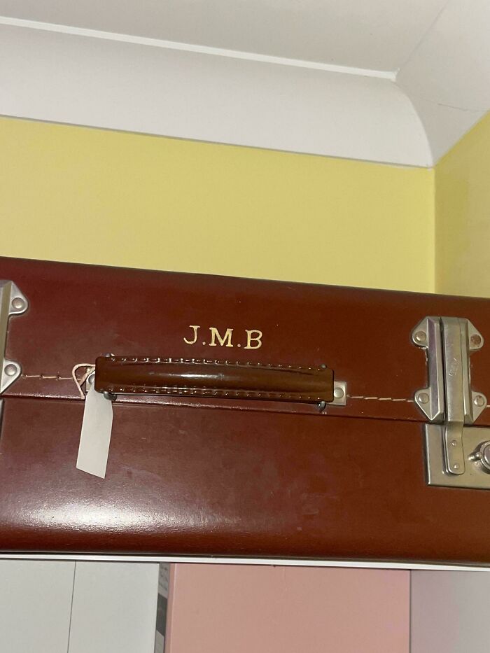 Cool Find From Yesterday: 1960’s Suitcase With My GF’s Full Initials Painted In Gold!