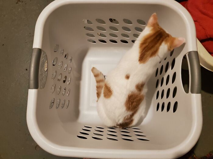 #25 My Cat In A Bin. He’ll Sit In Anything