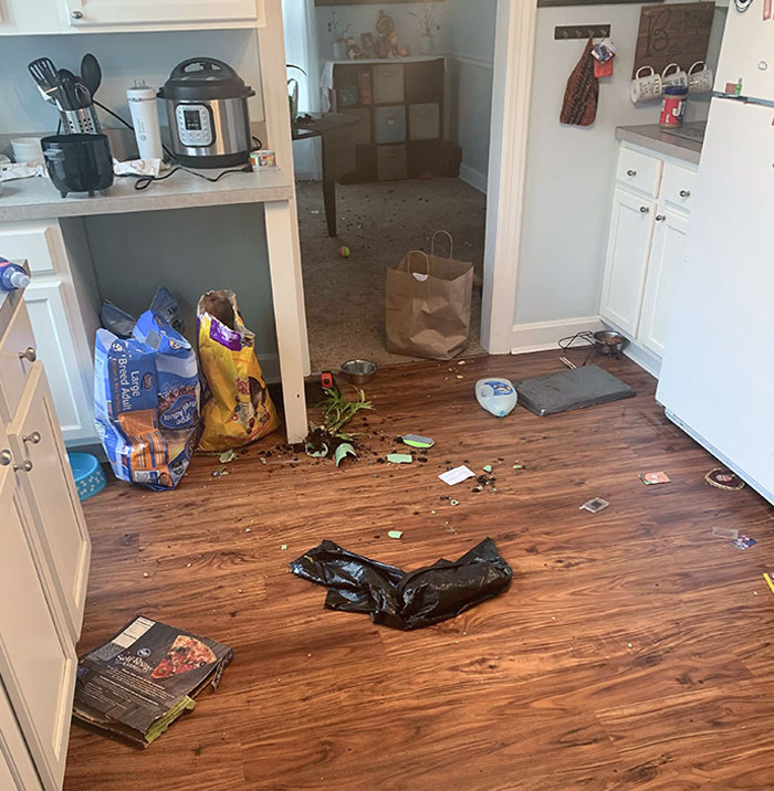 I should add – what isn’t pictured is my glass containers in the living room that were thrown against the wall, along with a dining room chair that was smashed against my wall.