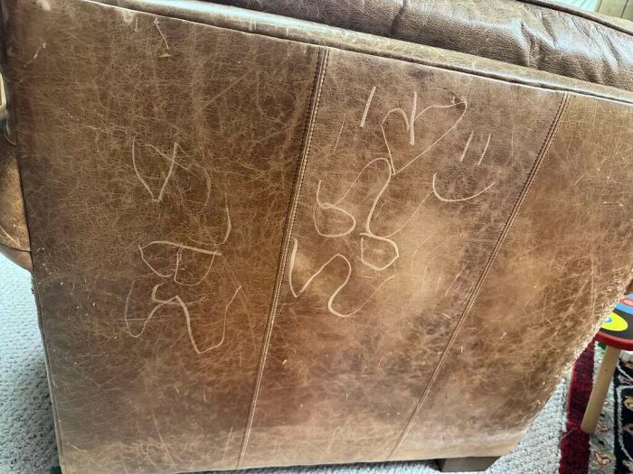 #16 Niece And Nephew Carved Drawings Into My Leather Chairs