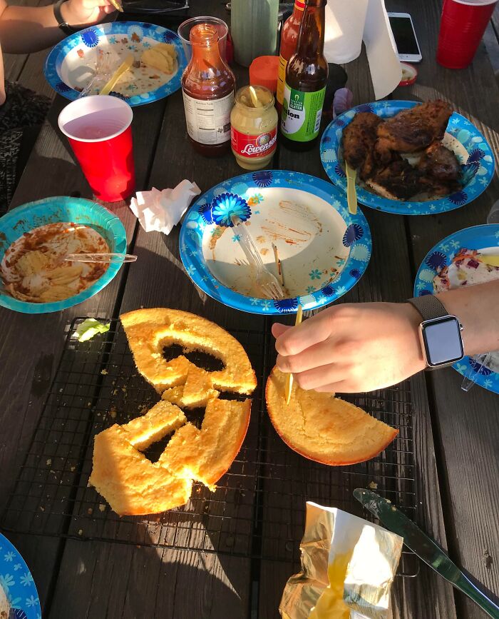 #2 The Way Guests Cut The Cornbread At My Buddy’s BBQ