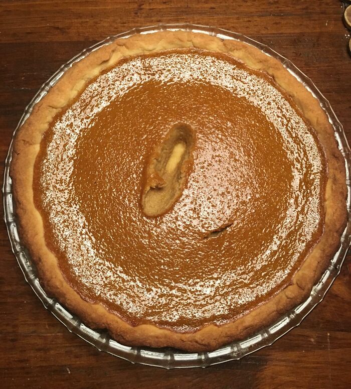 I made this pumpkin pie from scratch, including the roasted pumpkin and crust. It was a friend staying with us.