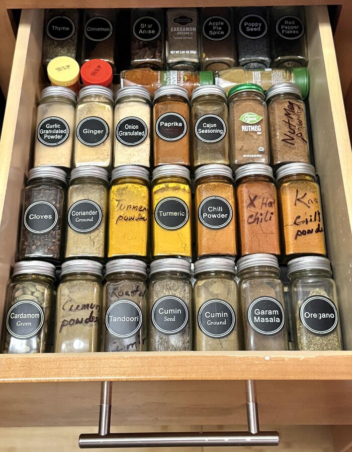 My husband doesn’t think it’s that big of a deal, so I wanted to vent a teensy bit. MIL came over to help me postpartum (stayed for about a month). Once I was healed and back in the kitchen, I walk in to a lot of things being rearranged. This one in particular made me want to laugh and cry at the same time lol. My poor spice jars have been written on with sharpie. And there are multiple duplicates.