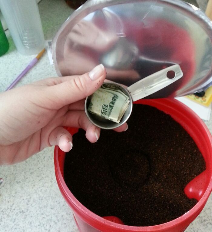 #45 Every Time My Dad Visits He Hides A $20 Bill Before He Leaves. This Spot Is By Far The Best. I’ve Been Making Coffee Like This For A Week Before I Noticed