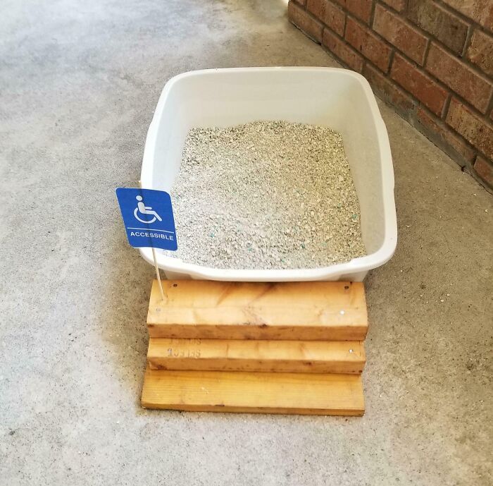 #22 My Parents’ Cat Got Hurt, So My Dad Made Him Some Steps For His Litter Box