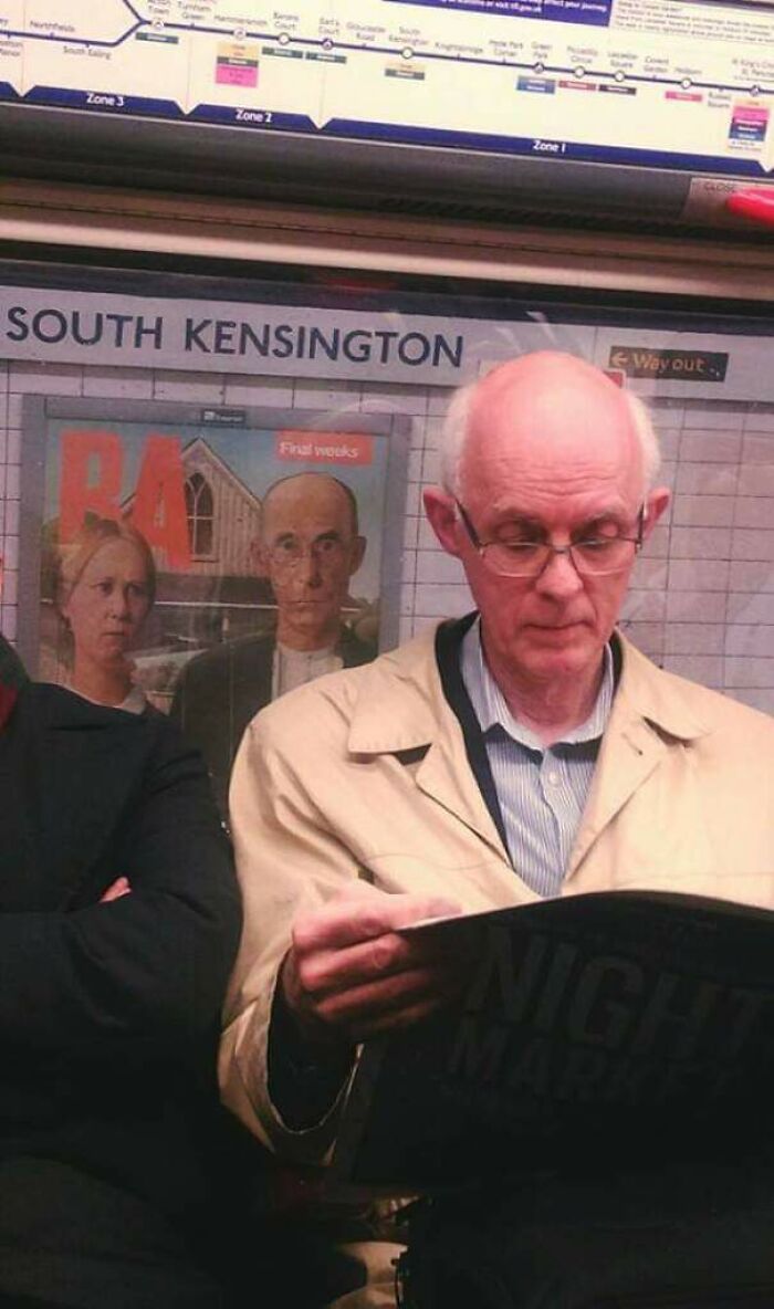 At times, you see someone sit down in front of a sign that resembles them almost perfectly, and you end up wondering if you accidentally stumbled into an episode of ‘Black Mirror’ or ‘The Twilight Zone.’ We’ve collected pics of some of the weirdest coincidences that passengers have ever spotted on the tube, as featured by the incredibly popular ‘Subway Creatures’ social media project. Scroll down to check them out, remember to upvote your fave pics, and check out Bored Panda’s interview with the project’s founder, Rick McGuire.