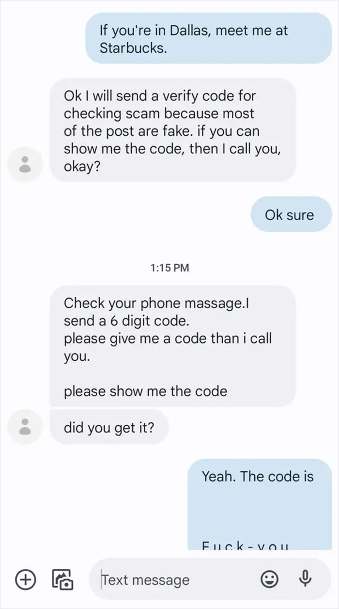 Luckily, not all people get caught up in scammers’ lies and sometimes even manage to troll them. We’ve gathered the funniest new instances when people caught scammers off guard and verbally destroyed them. So check them out below and don’t forget to upvote your favorite ones.