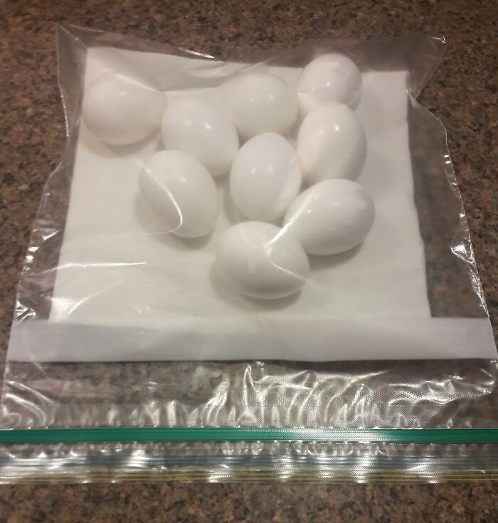 -A teenage girl eating an entire watermelon size ziplock bag of boiled eggs in a 20 minute period.