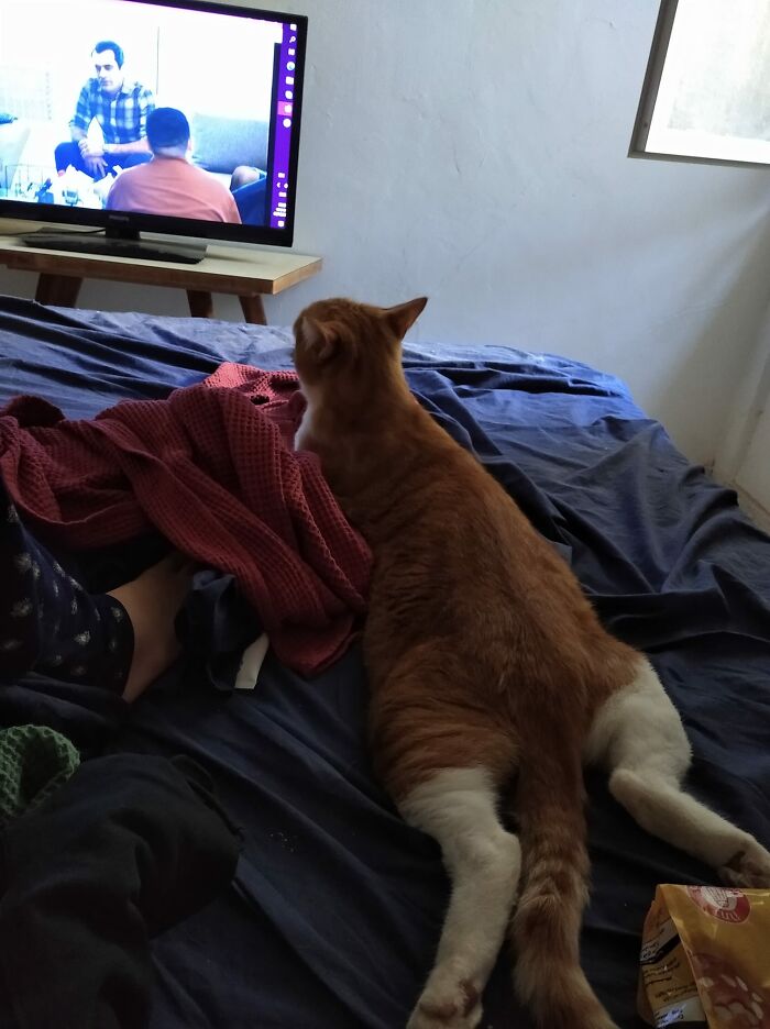 #63 My House, My Bed, Not My Cat! This Is Max, A Ginger Cat That Belongs To My Neighbor, And He Came By To Watch Some TV With Me