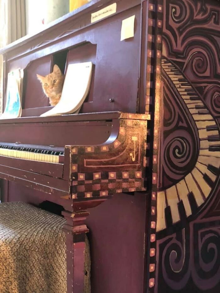Tupac is very mean but decided he liked my house better a few months ago. Now I text the owners if he is here too long, they bring him home, and he comes back in a few days. But this time, he’s in my piano