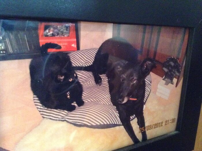 (Photo shows Toby with our beloved late doggy Sausage, who our neighbours also loved.