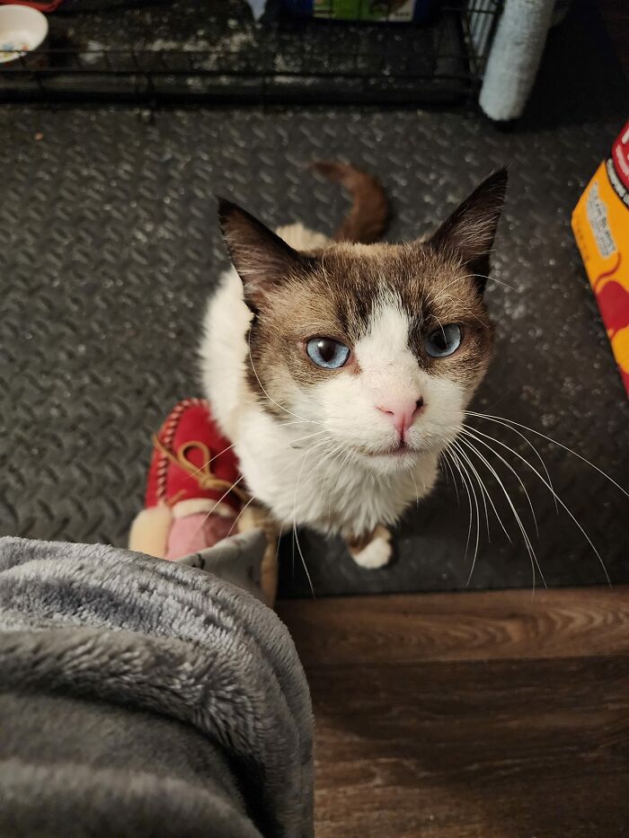 He belonged to the neighbor, but she never let him in the house, so I created a place for him in my garage. I left the windows down one night, this is what I came to the next morning.