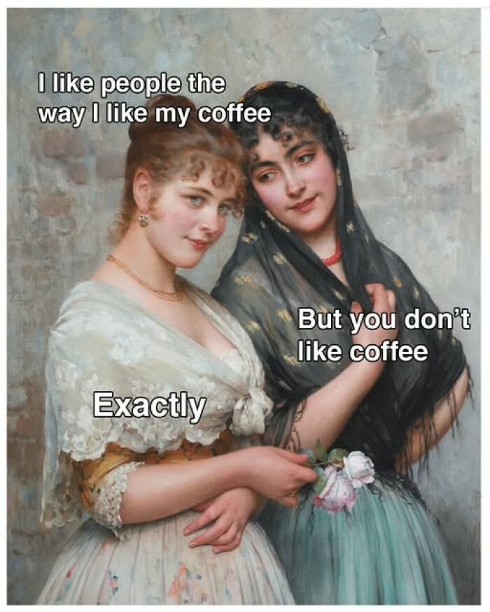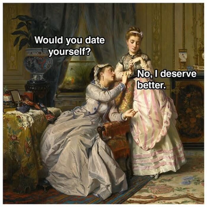 You might even end up Googling the artist and learning the painting’s backstory just because a funny caption caught your eye. Basically, these memes can teach us art history without it feeling like homework.