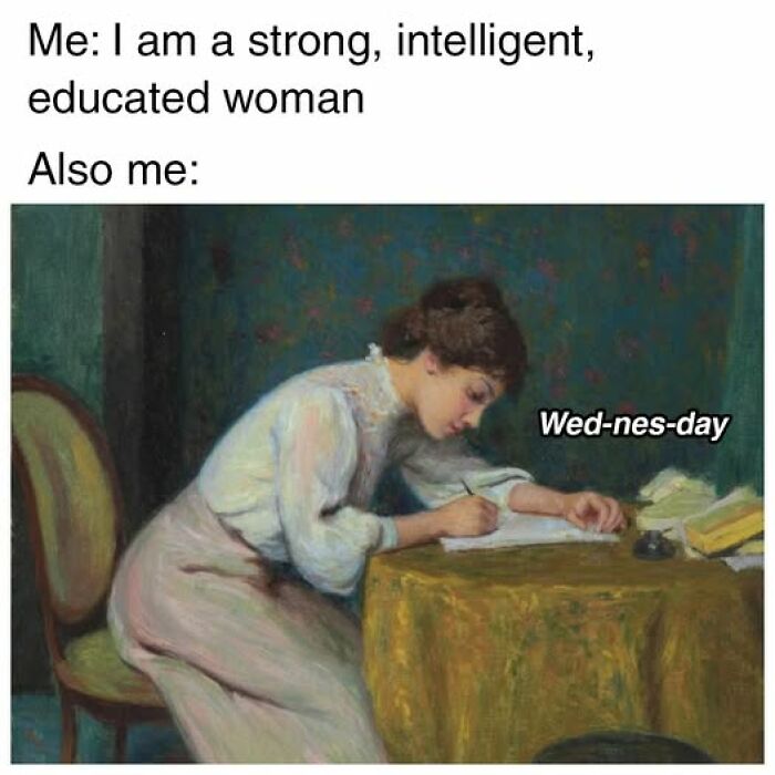 What makes art memes so funny is that the caption usually talks about a normal everyday situation, while the image taken from a classical painting shows an emotion or a scene that can be a little over-the-top.