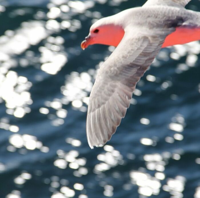 The seagull was lit up by the reflection from the boat I was aboard.