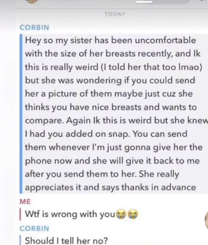 #29 Can You Send Me Photos Of Your Boobs For My Sister? I Promise She Won’t Show Me