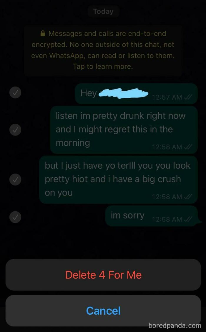 #22 Sent Out A Drunk Text To My Project Peer Last Night And Just Found Out Whatsapp Won’t Let You Delete Messages Older Than An Hour