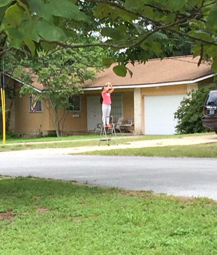 #14 Saw This Woman Getting A Better View Of The Eclipse
