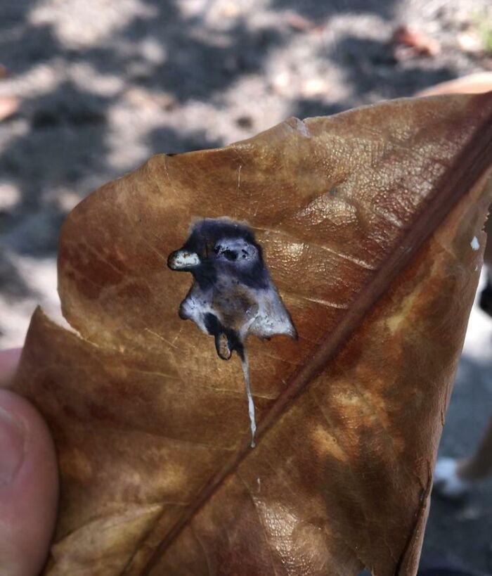 #72 Pigeon Poops Portrait Of Itself On A Leaf