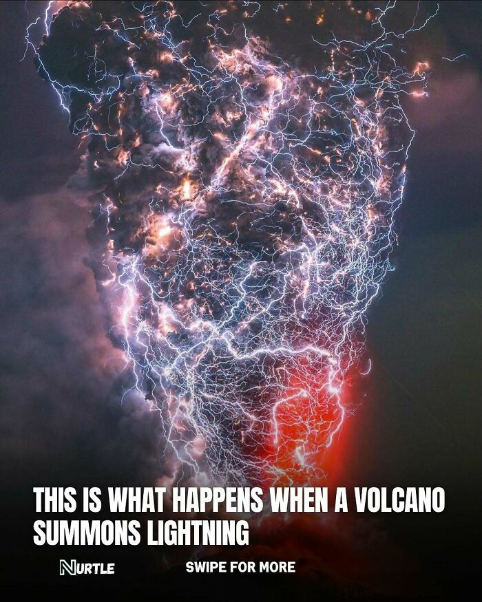 It’s called volcanic lightning, and it forms when ash, gas, and rock particles explode out of a volcano and violently collide in the sky. These collisions create static electricity—just like in a thunderstorm—except it’s happening inside a plume of ash and lava. The result? A blinding storm of fire and lightning, all coming from one eruption. Volcanic lightning has been captured during eruptions around the world—from Chile to Japan to Iceland—and it’s one of the most extreme displays nature can produce.