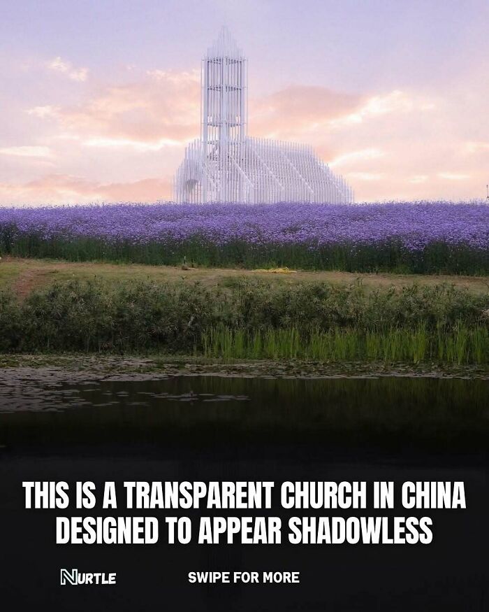 Built in 2019 inside the Sino-French Science Park near Chengdu in China, this non-denominational Christian church was designed by Shanghai Dachuan Architects using thousands of thin white aluminum beams. The result? A translucent frame that seems to float in the air, casting almost no shadow. Surrounded by lavender fields, the church glows in daylight, giving it a surreal, impressionist feel. Its openness to light is what inspired the name “Shadowless Church.” Beyond its striking design, the building blends Eastern and Western influences and serves as both a place of worship and a cultural landmark — offering a modern take on spirituality, architecture, and sustainability.