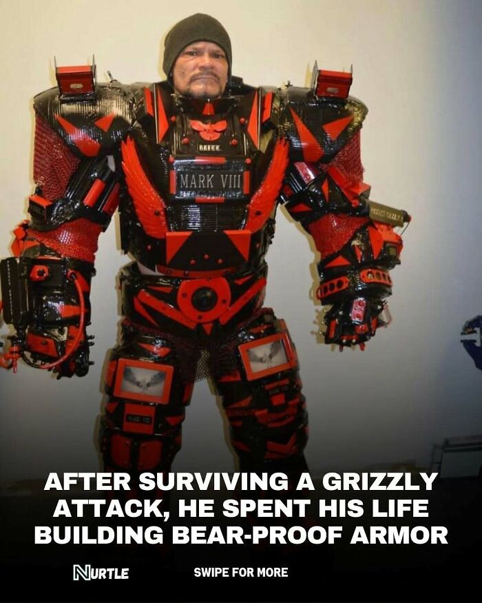 Troy Hurtubise dedicated his life to creating suits strong enough to withstand a grizzly bear attack. His obsession began after a near-fatal encounter with a bear in his twenties, inspiring him to design armor that would let him study the animals safely up close. Over the years, he built several versions of his suit, each one heavier and more advanced. His designs, like the Mark VIII model, featured reinforced plating, hydraulic joints, and a helmet with built-in cameras and sensors. Despite becoming somewhat of a cult figure for his fearless experiments, Hurtubise never got the chance to test his final design. He died in a car accident in 2018, leaving behind a legacy of creativity, courage, and one of the strangest inventions in wildlife research.