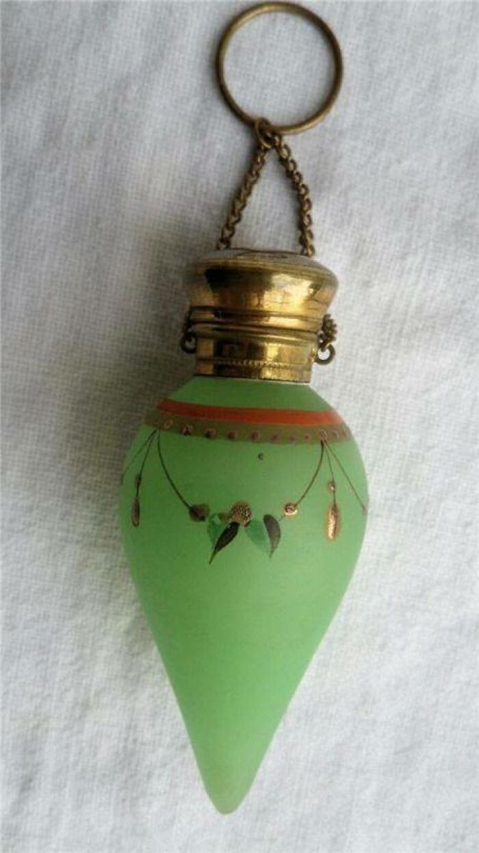 #87 Green Opaline Glass Chatelaine Scent/Perfume Bottle – Raised Enamel, CA.1900