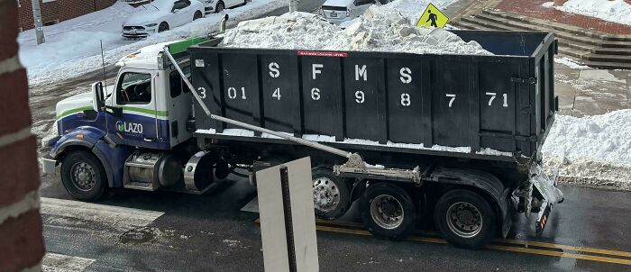 Dozens of trucks are hauling away the snow and I’m curious if anyone knows where they take it. Do they create a gigantic snow mountain? Do they give it to the crabs in the bay?