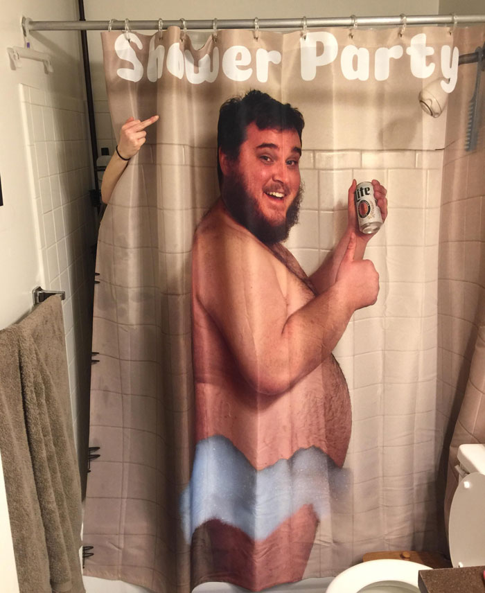 #8 I Made My Wife A Shower Curtain Of Me Drinking A Beer In The Shower