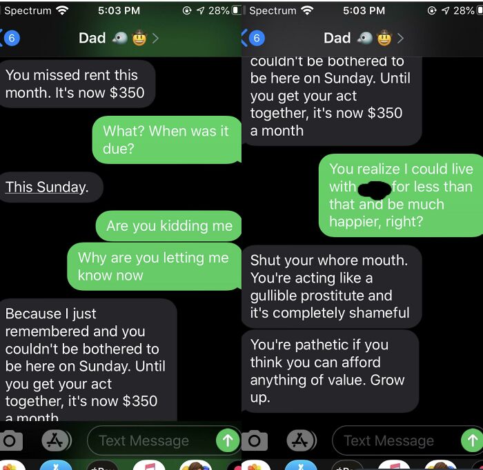 #21 My Dad Charges Me $300 A Month For Rent And Refuses To Let Me Move Out. After Spending The Weekend With My Boyfriend, I Received This.
