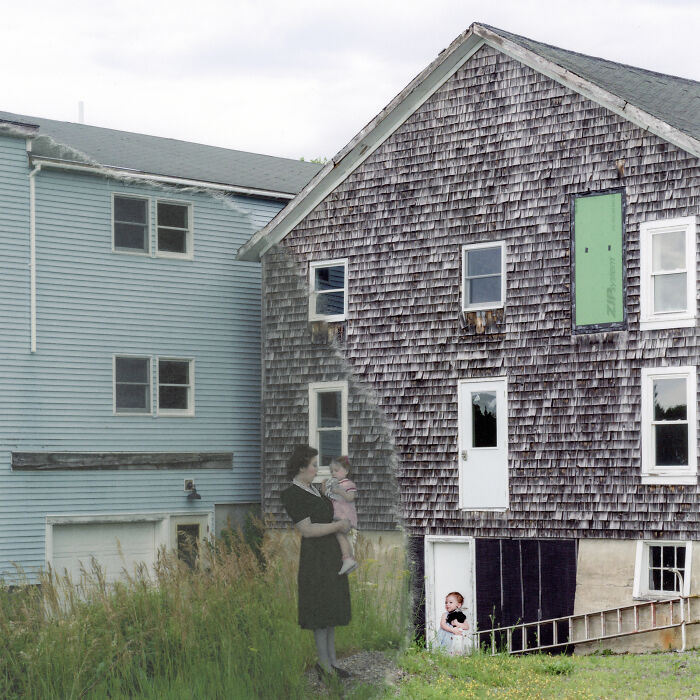 Our connections to our ancestors and our descendants often feel stronger than our connections to those around us. I often wish my children knew my grandparents. These are portraits of my children as the product of a history of lives lived and intertwined, each affecting and shaping the other. This series interrogates the role of family relationships and history in shaping our sense of ourselves and our place in the world. I have composited my old family photographs, photographs I took of my children as they grew, and images of the New England landscapes in which my children and I grew up. With these compositions, generations reach for each other across time. I exist in the tension of the space between those who came before me and those who will come after. The project is driven by a longing for connection that makes real those things I hold dear, and by anxiety around individual responsibility in passing on family history.”