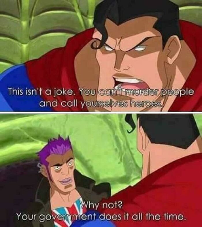 #42 Can We Appreciate The Fact That This Screenshot From Superman vs. The Elite Is Still Relevant Even Now?