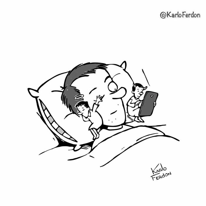 Ferdon just enjoys sharing his work on social media. In his last interview with Bored Panda, he shared, “In all truth, I can only say that generally, people tend to react to my work very well. Of course, there are always those who do not understand the joke at all or understand the opposite of what the cartoon tries to say or portray, but it is something that usually happens when making humorous comics without any words.”
