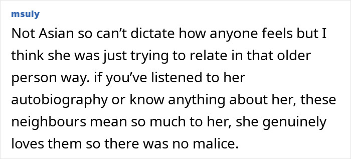 Several made fun of the fact that the 83-year-old used Liu’s Chinese heritage to segue into a personal anecdote of her own.