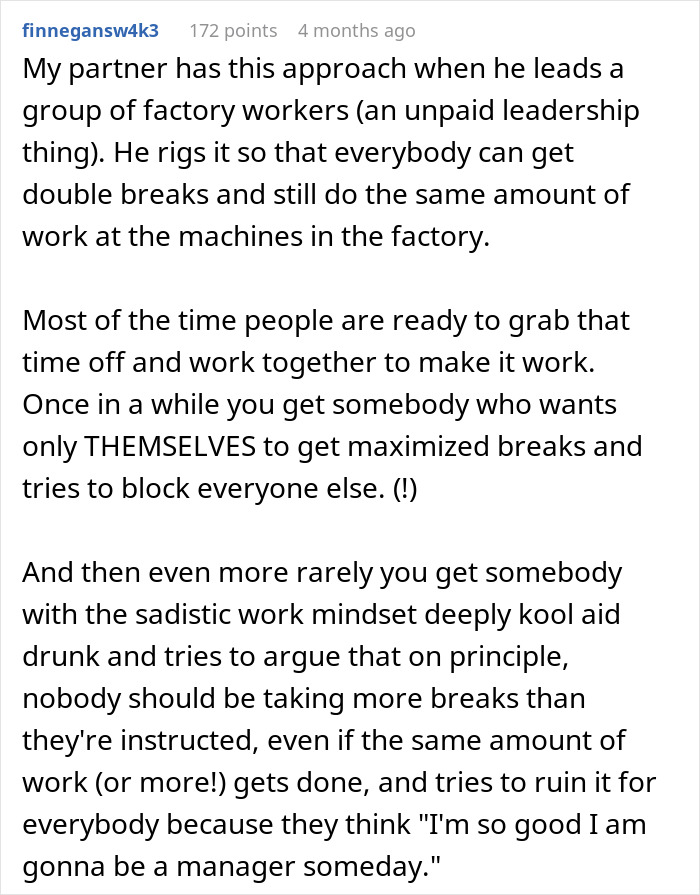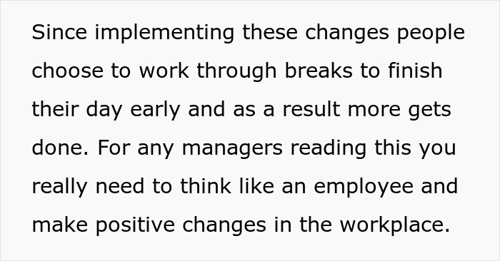 A person working at a branch of a global multibillion-dollar company shared online how they enhance employee retention by offering longer breaks and full pay for early completion of tasks. Continue reading to learn more about the author’s unique approach to work.