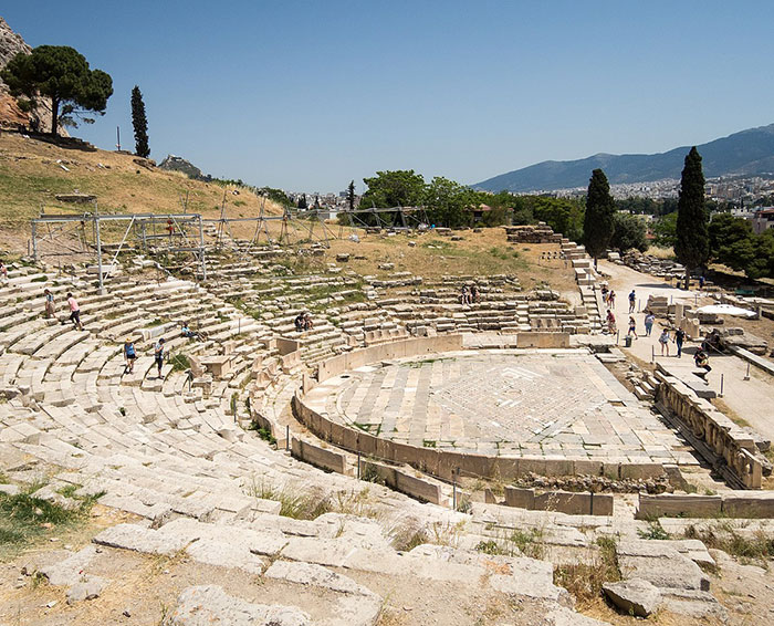 The 10th-century Byzantine encyclopedia, the Suda, chronicles a folkloric story of lawgiver Draco’s death in the Aeginetan theatre: in a traditional ancient Greek show of approval, his supporters “threw so many hats and shirts and cloaks on his head that he suffocated, and was buried in that same theatre”.