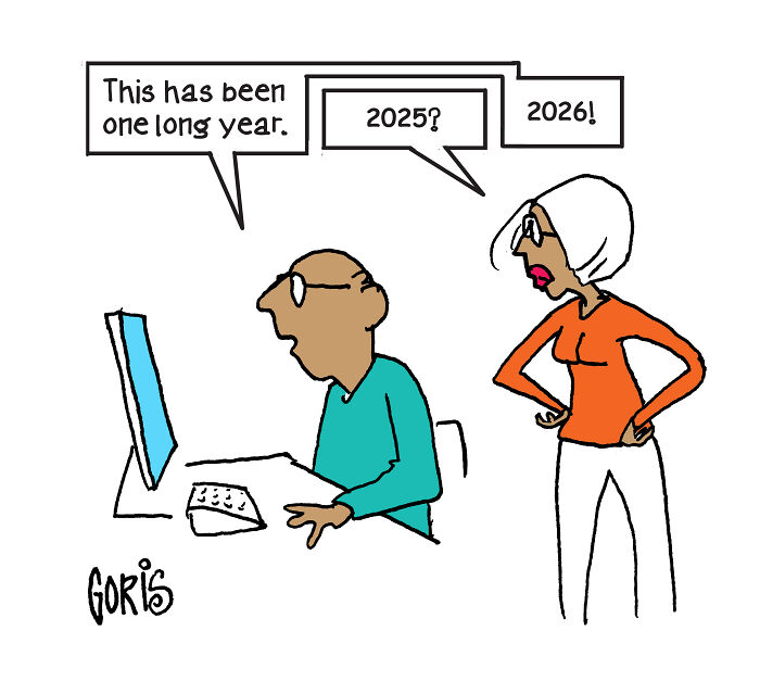 Dennis Goris’ cartoons have always thrived on doing more with less, but this batch is especially sharp-edged. The art is stripped down to the bare minimum, the captions are blunt, and the points land hard. His minimalist style doesn’t ask you to decode anything; it asks you to know the bare minimum about current events, holds up the situation to your face, and lets the absurdity speak for itself.