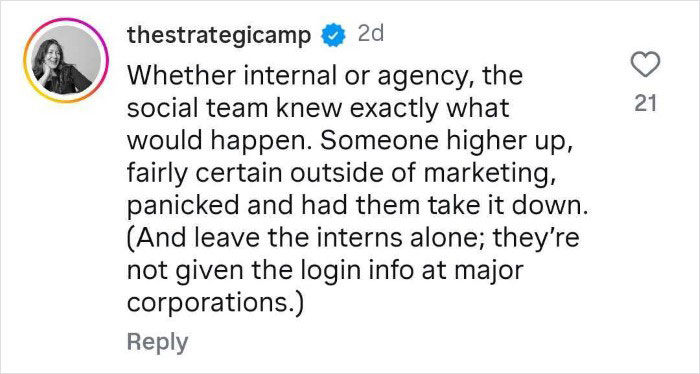 And, in a moment of poor judgment, they deleted the thread, resulting in a “Streisand effect”: instead of going away, the screenshots from the thread went viral.