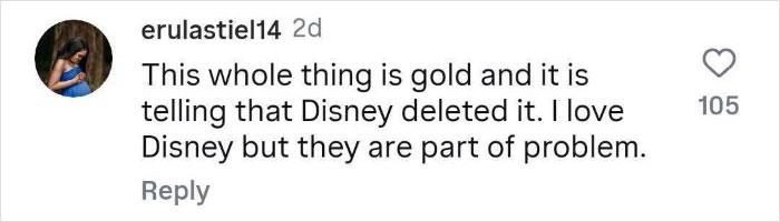 As of today, Disney has not addressed the deleted thread or the backlash. However, the comments under their other posts on Threads have been usurped by people posting the same quotes, GIFs, and screenshots from the previous thread.